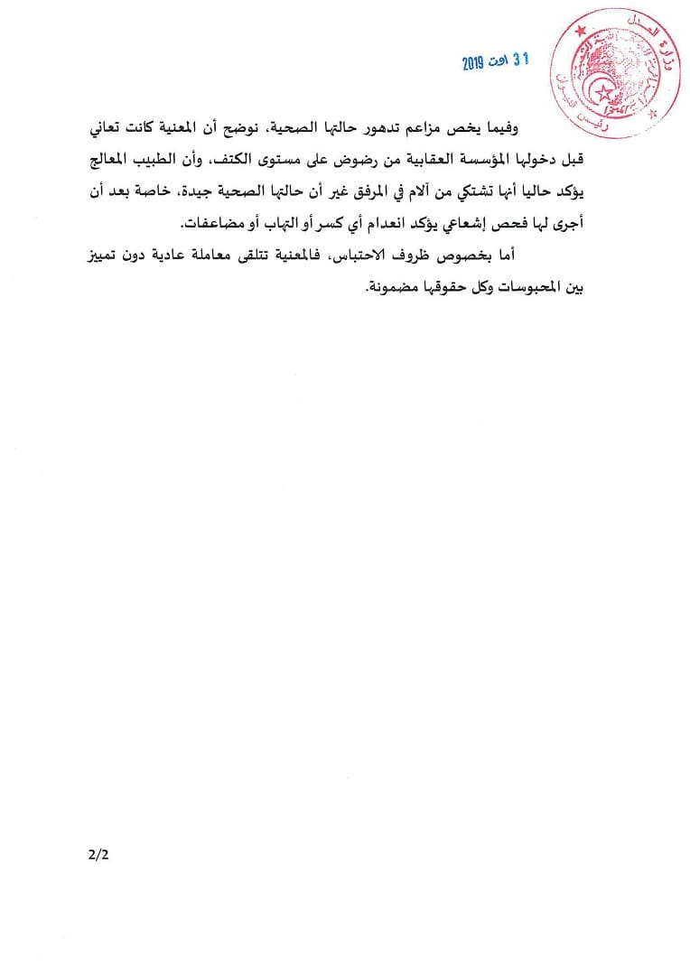 Le ministère dément également une détérioration de l’état de santé de Samira Messouci. Il affirme, enfin, qu’elle est traitée comme tous les autres détenus.