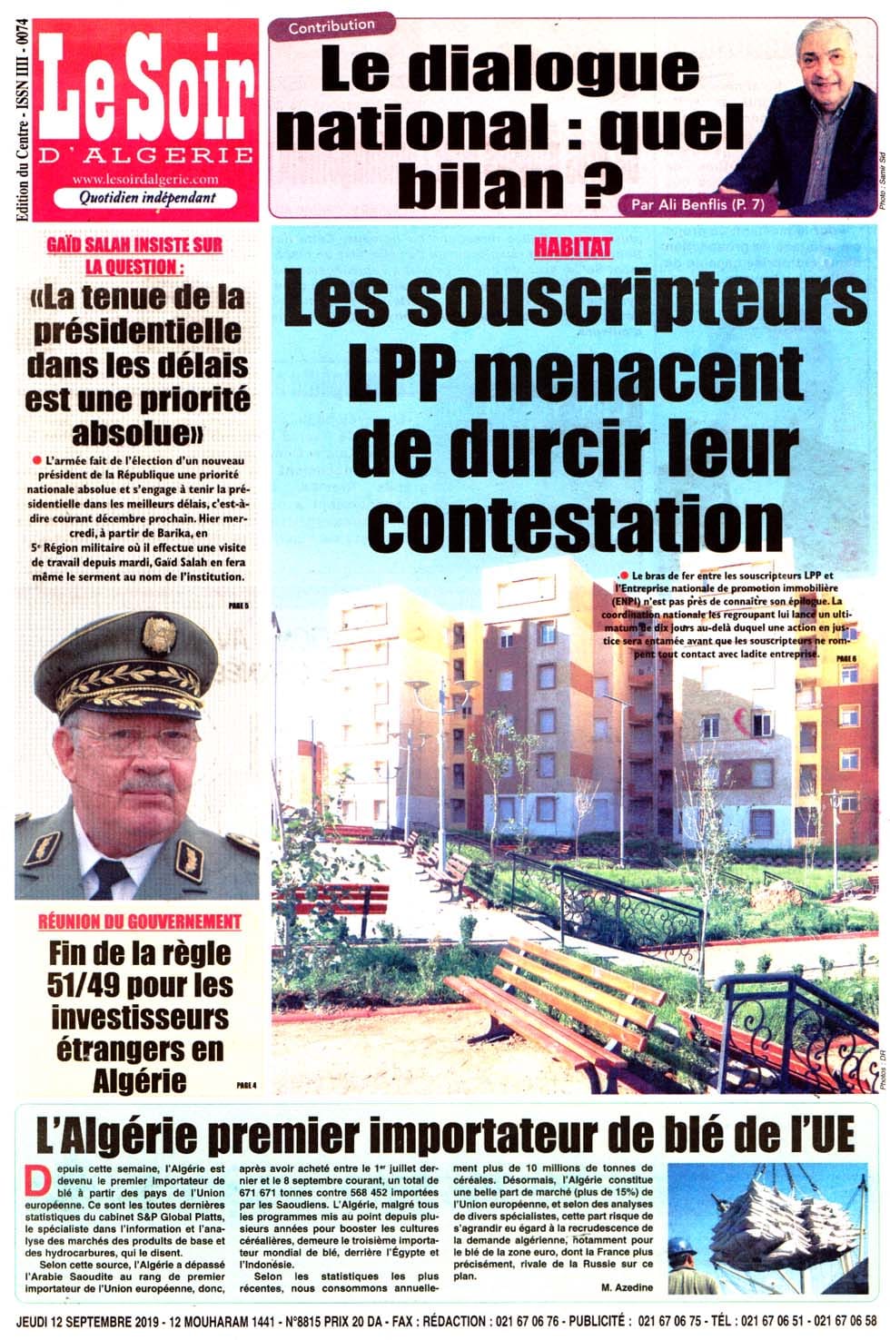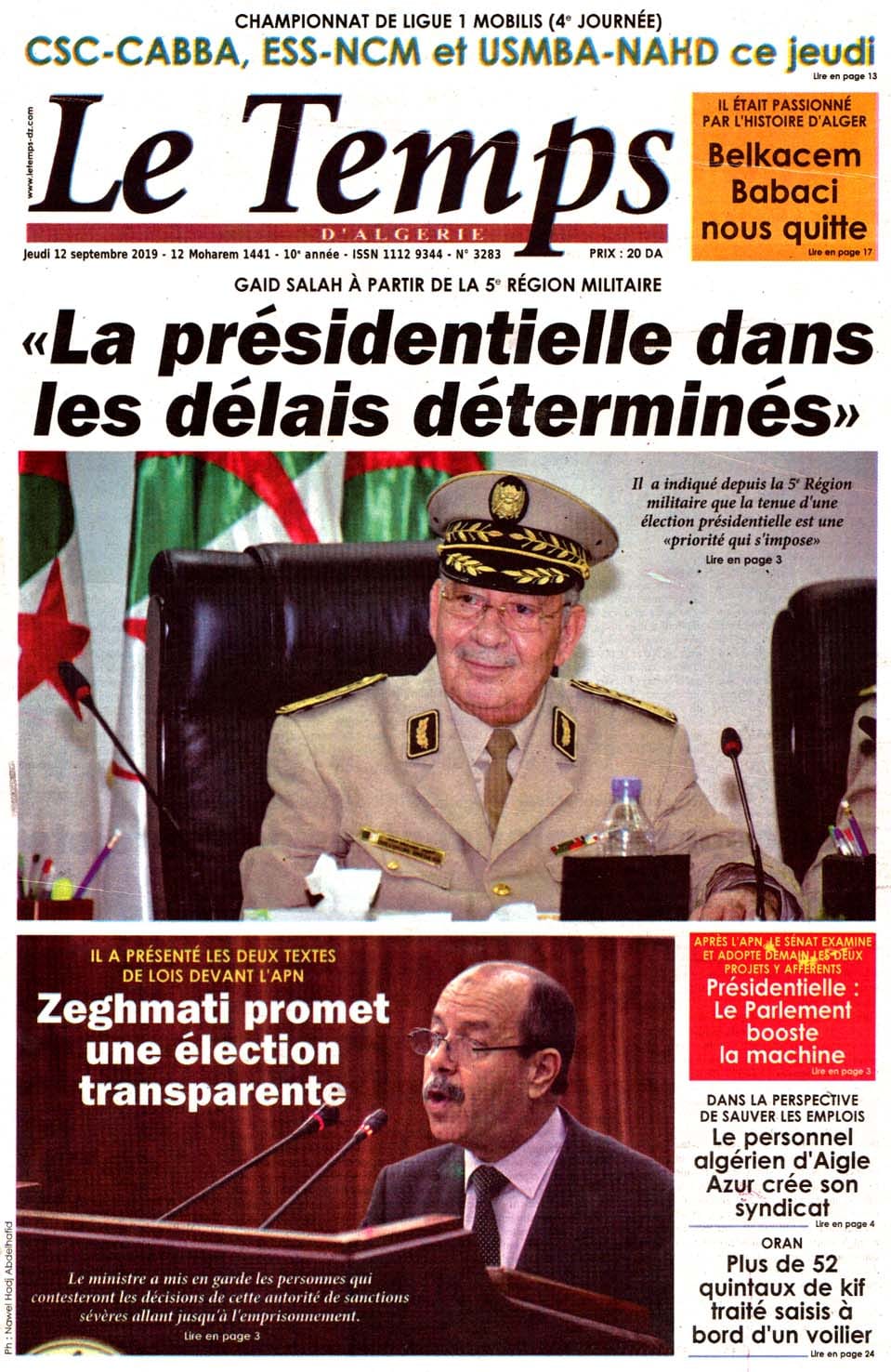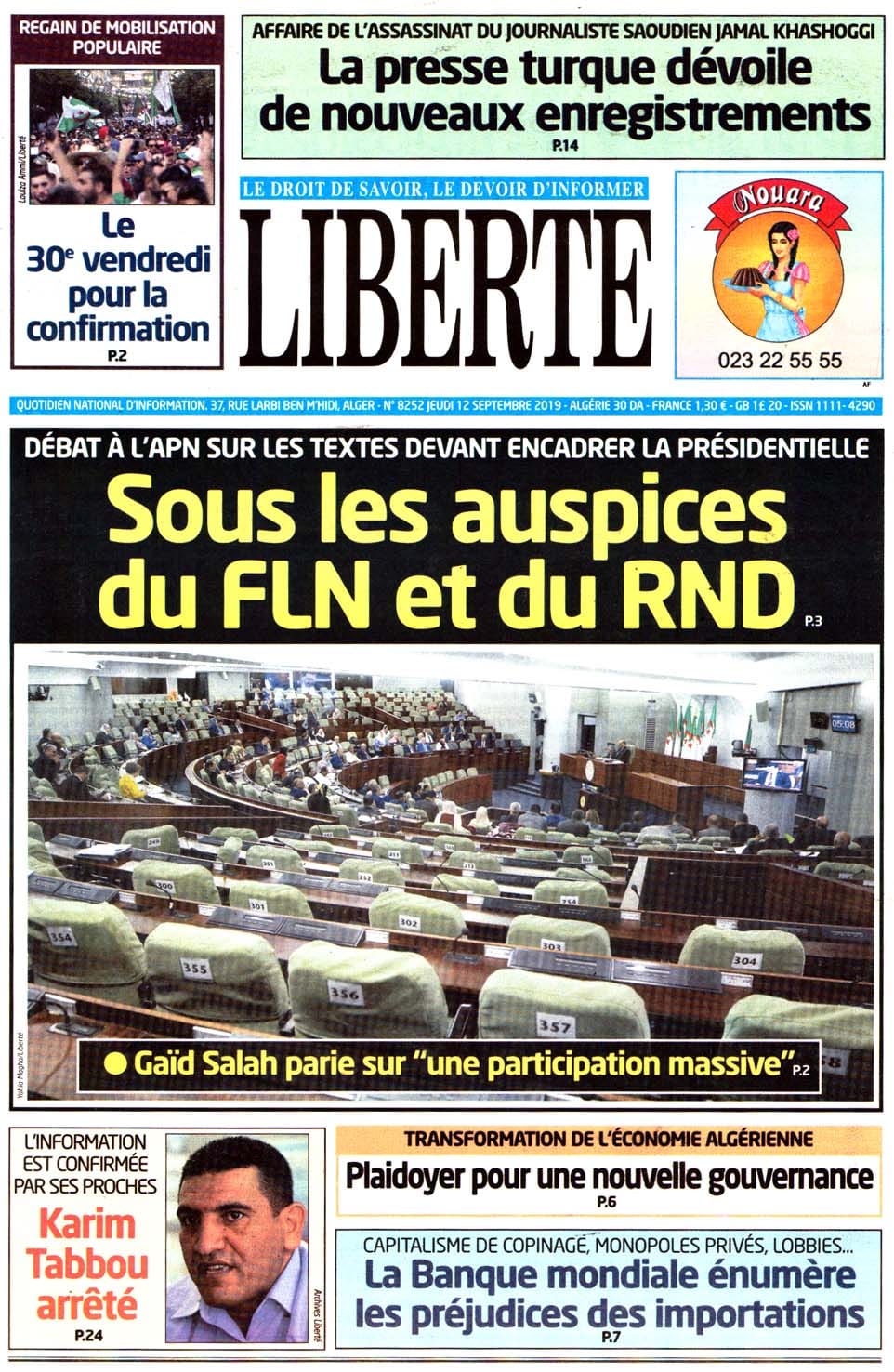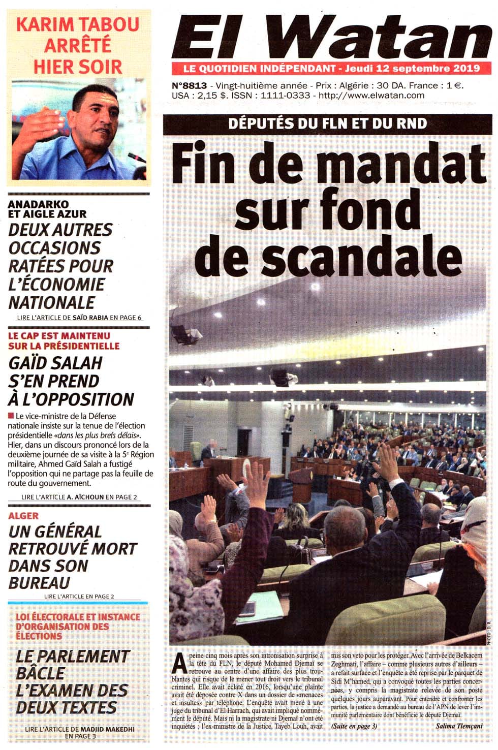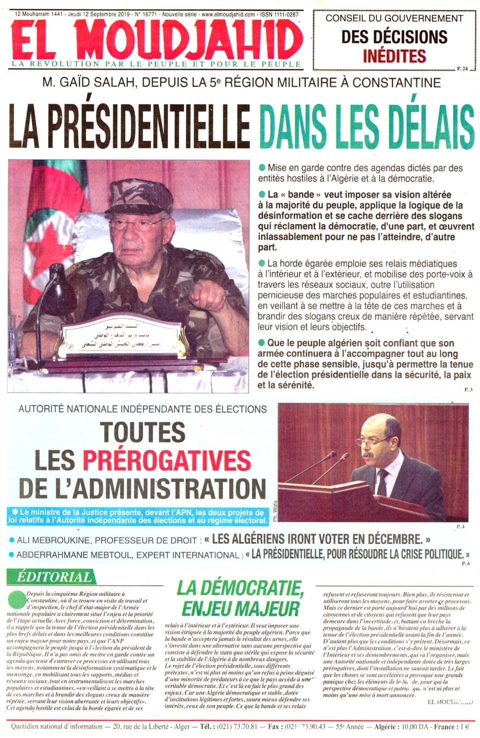 ALGÉRIE/ POLITIQUE: LA REVUE DE PRESSE DU JEUDI 12 SEPTEMBRE 2019