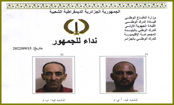 “Conformément aux dispositions de l’article 17 du code de procédure pénale et en vertu du mandat délivré par le Parquet de la République près le tribunal de Chéraga, le Groupement territorial de la Gendarmerie nationale d’Alger informe les citoyens avoir procédé à l’arrestation des deux suspects apparaissant sur les photos jointes à l’appel à témoins”. Il s’agit de “A.Y.M” et de “P.M”, suspectés dans des affaires d’usurpation d’identité.