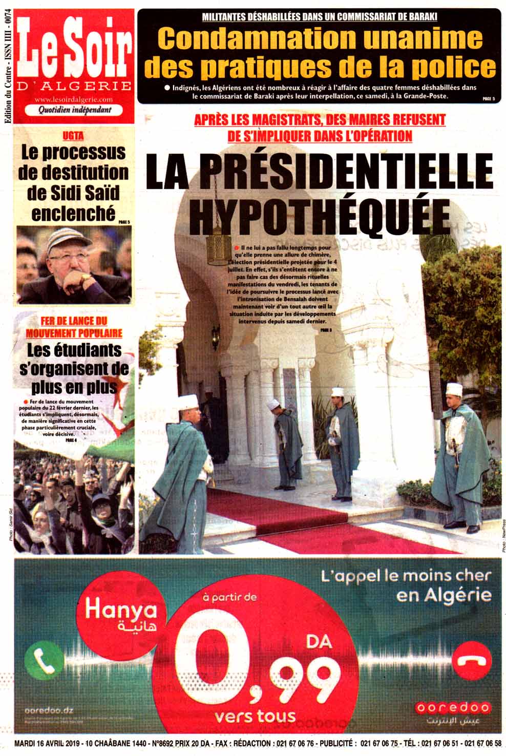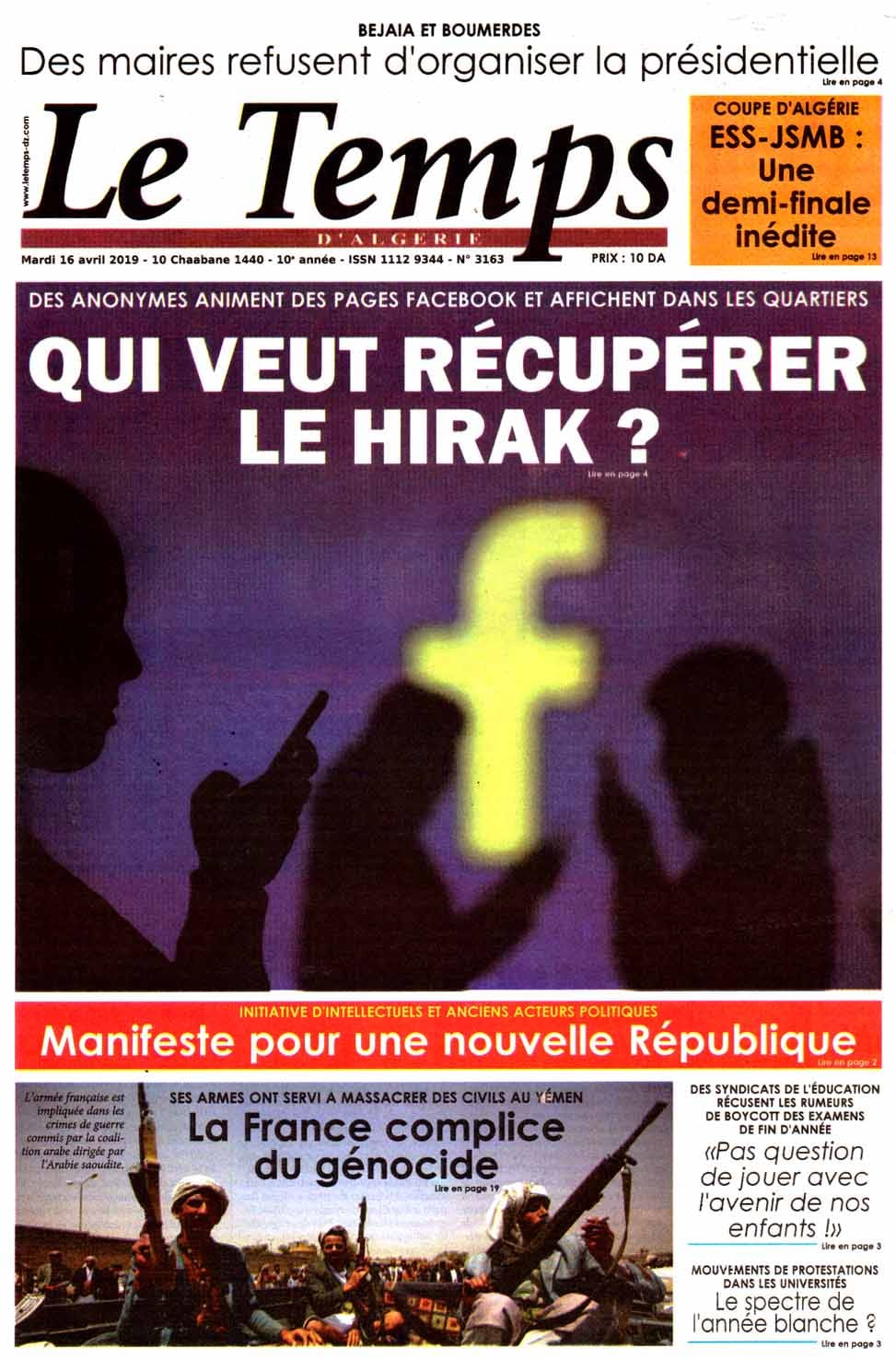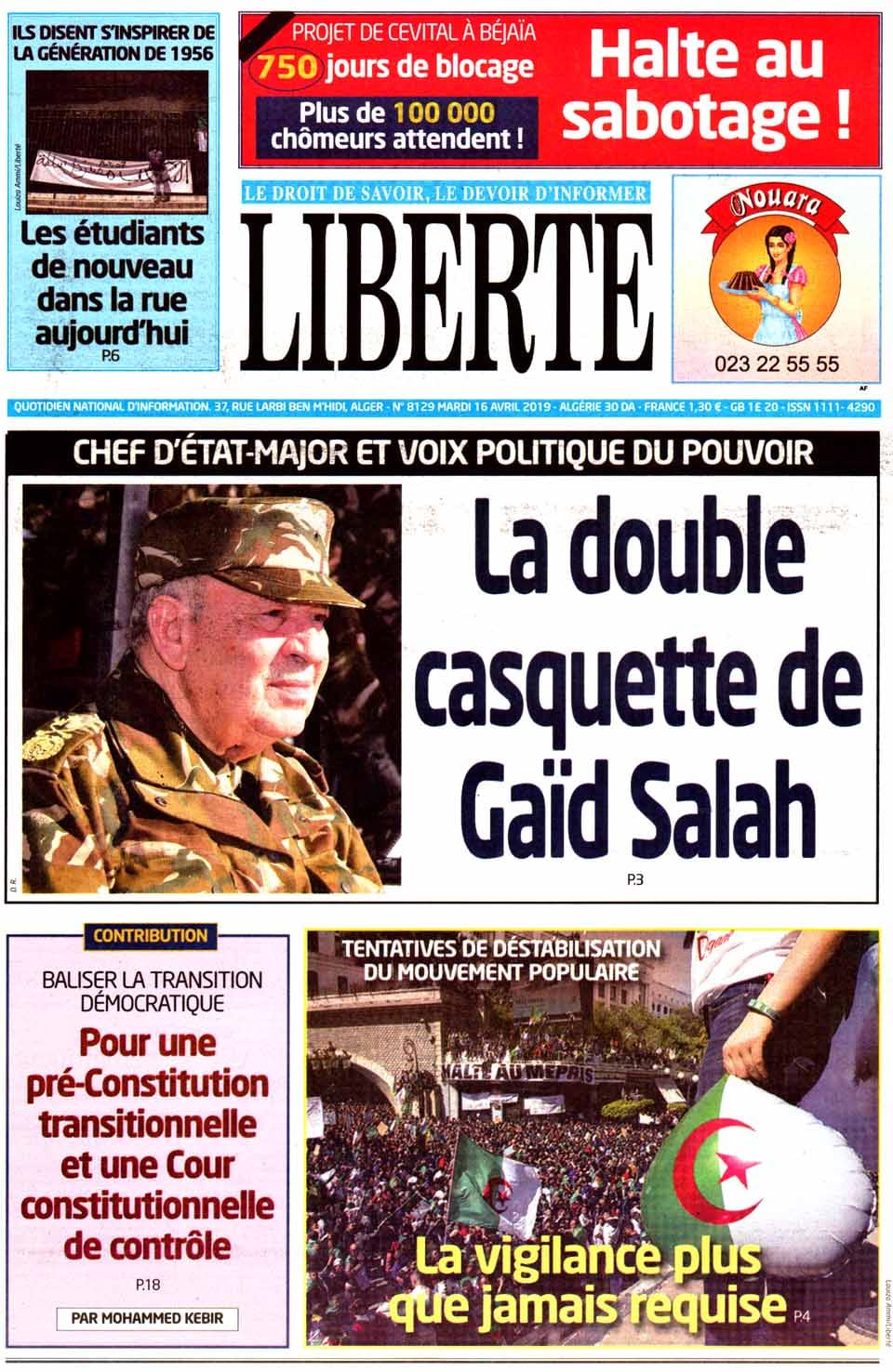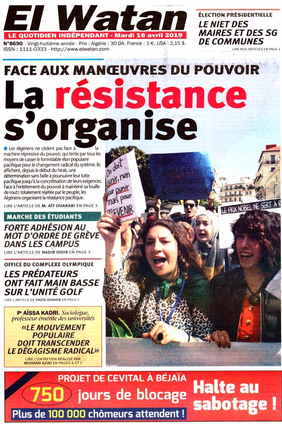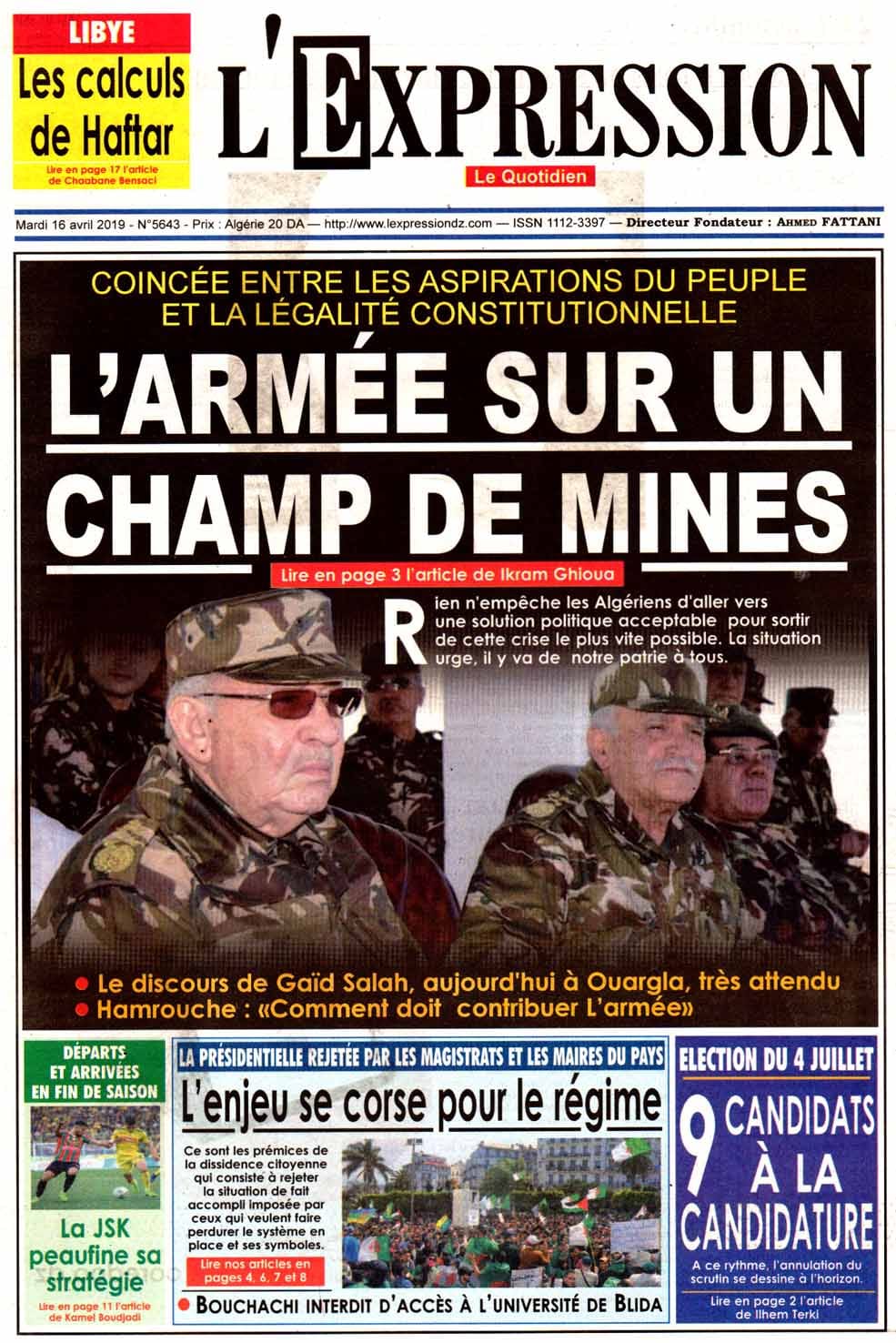 ALGÉRIE/ POLITIQUE: LA REVUE DE PRESSE DU MARDI 16 AVRIL 2019