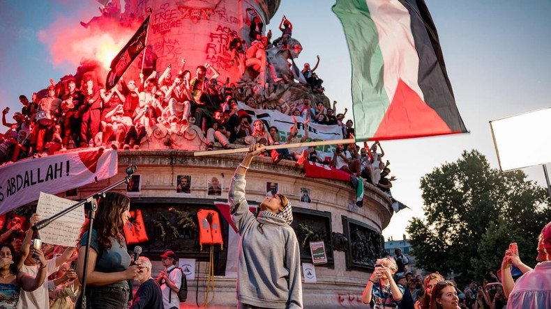 L’appel au rassemblement lancé dès son retour a largement été entendu. Dès la tombée de la nuit, des centaines de personnes avaient convergé vers la place de la République, où les drapeaux palestiniens flottaient aux côtés de pancartes dénonçant l’impunité d’Israël et la complicité des gouvernements occidentaux. « Rima, Rima, Paris est avec toi ! », scandait la foule, tandis que la statue centrale se couvrait de slogans exigeant la fin du blocus et la reconnaissance des droits du peuple palestinien.