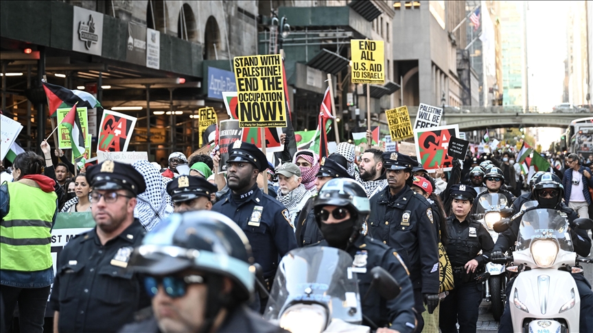 Des milliers de personnes ont de nouveau participé mardi à une marche massive à New York, pour protester contre l’agression génocidaire menée par l’occupation sioniste contre la bande de Gaza depuis deux ans.